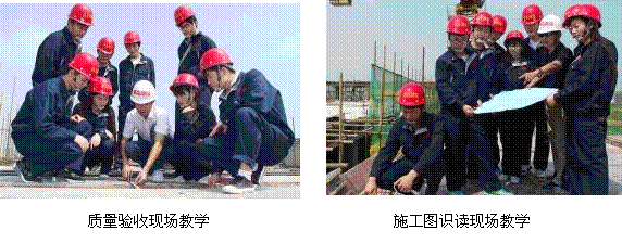 《施工图识读与会审》、《建筑施工技术》、《建筑工程测量》、《建筑工程质量检查与验收》等理实一体化课程,其理论教学主要在学校完成,实践教学主要在施工现场完成。每4-8名学生为一组,学生上午在学校上课,下午到施工现场跟着企业师傅实践,学生通过边看边学,同时结合相应课程的理论教学,全面巩固和熟练掌握各种典型建筑结构类型建筑施工技术、工艺流程、质量验收方法和标准。