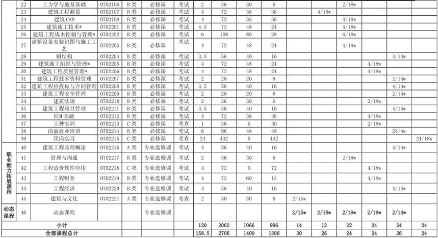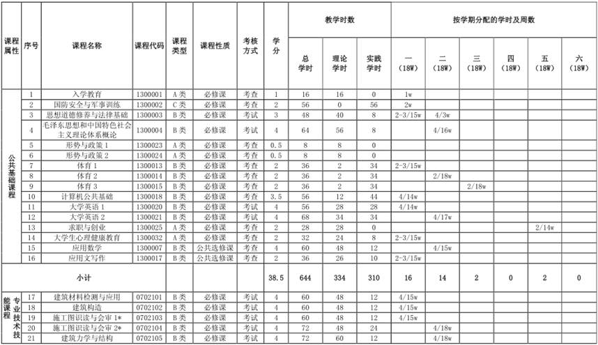 注:形势与政策1、形势与政策2以专题讲座的形式进行。每学期预留2学时的课时,针对行业新技术、新规范、新工艺、新材料等实际情况动态开设相应课程。
