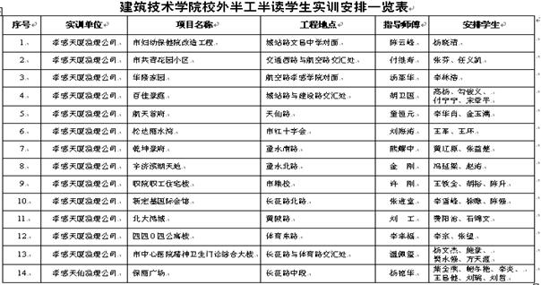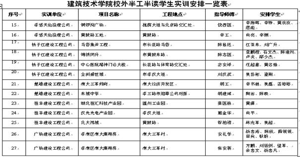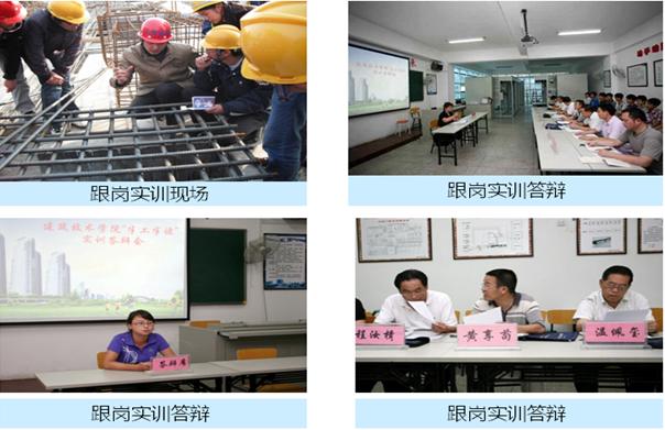 该实践环节主要在学校所在城区校外实习基地,由企业技术管理人员当师傅,每3-8名学生为一组,全程跟踪一个建筑工程项目。学生上午在学校上课,下午到施工现场跟着师傅实践,学生通过边看边学,同时配合“建筑材料检测与应用”、“建筑工程测量”、“建筑施工技术”、“建筑施工组织与管理”、“建筑工程质量管理”等理论实践一体化课程的教学,全面巩固和熟练掌握各种典型建筑结构类型建筑施工技术、工艺流程、质量验收要点和施工组织设计方法、建筑工程造价编制等。学生每周每组要填写施工周记,记载施工技术要点、工艺流程、学习心得等,学习结束后还要以小组为单位分基础工程、主体工程、装饰装修工程3个阶段进行学习陈述和答辩,答辩通过才能进入顶岗实习环节。该实训环节主要集中于第3-4学期。