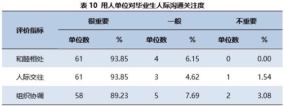 在毕业生的“社会能力”方面,用人单位更重视能否与同事“和睦相处”和毕业生的“人际交往”能力。对学生的“组织协调”和管理能力关注度要低得多。