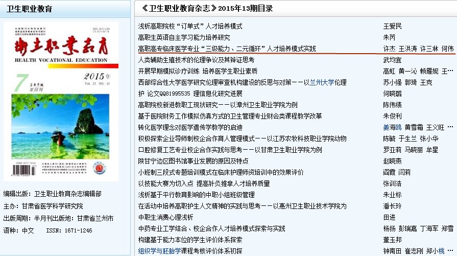 湖北省高等学校省级教学研究项目:高职临床医学“三级能力二元循环”人才培养模式改革与实践