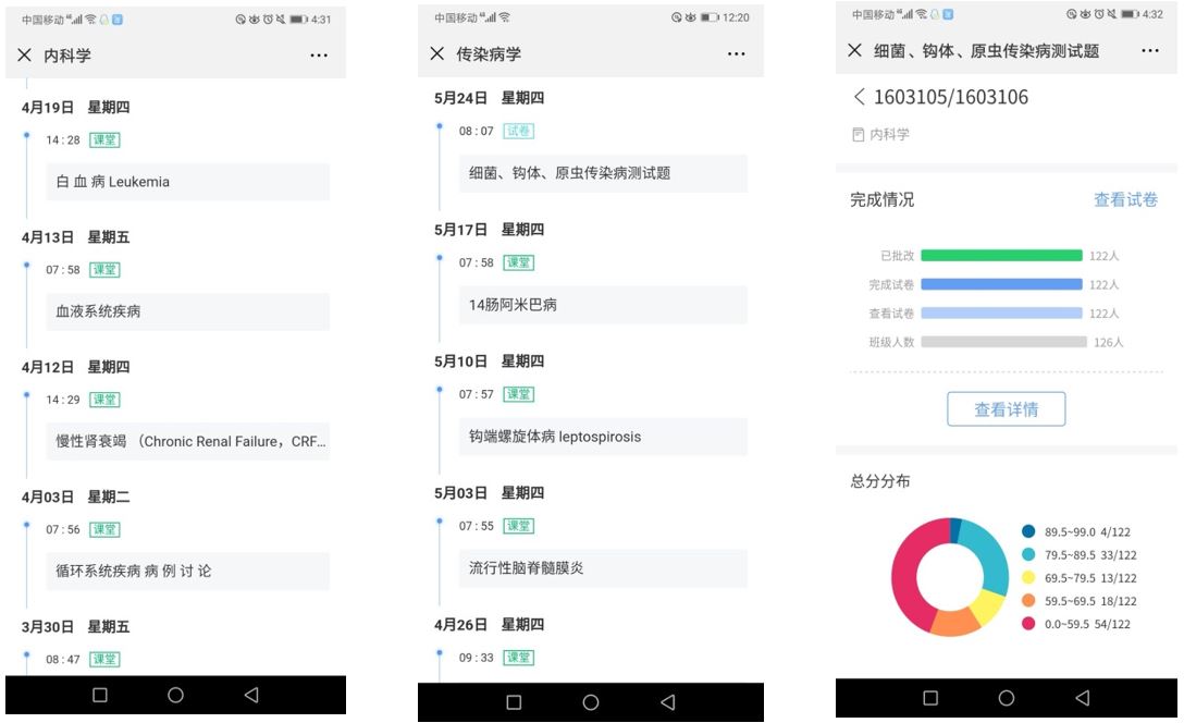 我校临床医学专业建有10门院级精品课程、4门省级及教指委精品课程、2门国家级精品课程和2门国家级精品资源共享课程和一门在线课程,搭建了校级、省级、国家级网络精品课程教学平台,构建了优质网络课程资源,突破了传统“面授”教学的局限,为学生提供了时间分散、自由安排学习、资源共享、地域广阔、交互式的学习创新方式。开展信息化教学后,一部分课程可以由学生根据情况自主安排,在图书馆、宿舍就可以通过移动设备学习,突破了传统的时空限制,同时可以共享其他学校优秀教师建成的精品课程资源,实现跨越式发展。