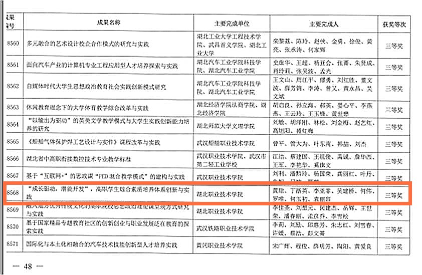 黄琼老师的教学成果获得第八届湖北省高等学校教学成果三等奖