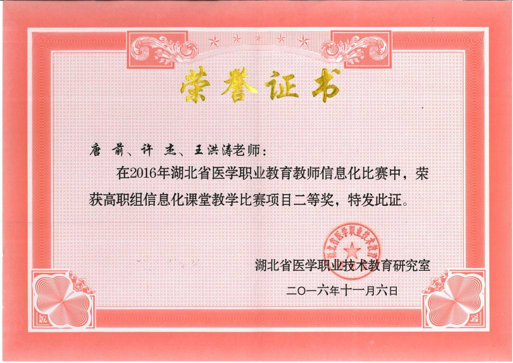 唐前、余佩等老师获得湖北省医学职业教育教师信息化教学比赛二等奖和三等奖