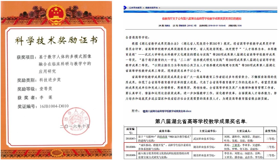 通过近三年的建设,教师的教科研水平有了较大幅度提升,主编、副主编教材33部,获得实用新型发明专利35项,发表教科研论文近200篇,获孝感市科技进步一等奖一个,省级教学成果三等奖一个。许三林、岳新荣等多名教师参加了校内外相关项目的评审工作,师生在各级各类教学竞赛中成绩突出,教学质量得到了学生、学生家长、用人单位及校友的好评,多家兄弟单位来校参观考察,专业报考招生人数逐年上升。