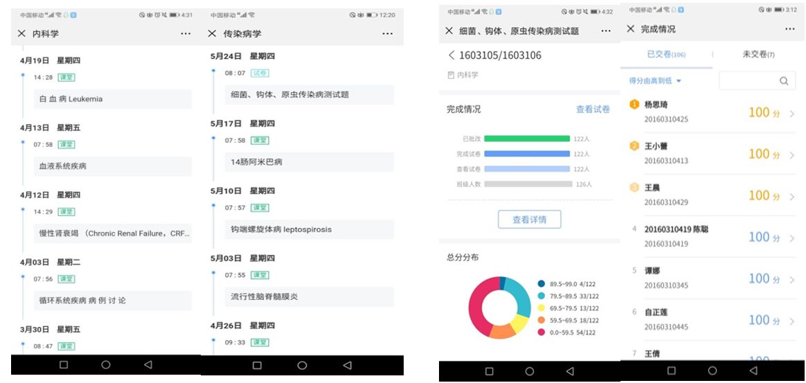 搭建了国家级精品资源共享课程、省级精品课程和校级精品课程三级网络课程信息化自主学习平台,开发了《症状学》在线课程,建立了课程微信公众号,开展了线上线下混合式教学,实现了全部核心课程的信息化教学,彰显了信息化教学手段的充分运用,提高了学生的学习效率与学习积极性。