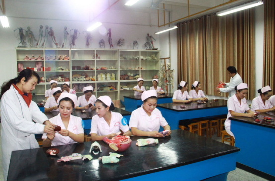 医学美容技术专业起源于护理专业美容方向,2002年9月首次开设护理专业美容护理方向班,此时的美容实训室为一间约30平方米的学生宿舍区一楼的门面房,内设8张床位,由一名专业老师负责管理,一方面供学生进行美容专业技能训练,同时也对外开展美容技术服务。2008年6月申办医疗美容技术专业并于2009年9月正式招收第一届学生,医学美容技术专业校内外实训基地建设正式启动。2015年10月教育部更改专业目录,医疗美容技术专业变更为医学美容技术专业。该专业先后被学校确定为优势发展专业、校级特色专业、“现代学徒制”人才培养试点专业。2015年11月,根据《省教育厅关于公布2015年立项建设的省级高等职业教育品牌专业与特色专业名单的通知》(鄂教职成[2015]14号),医学美容技术专业被湖北省教育厅批准立项进行特色专业建设。本专业坚持以培养高素质高技能型适应市场需求的应用型医学美容人才为目标,走校企合作、工学结合之路,充分利用校内外优势资源,不断加强实训基地建设。目前医学实训中心总建筑面积20000平方米,包括医学基础实验中心、医学美容实训中心、临床技能训练中心和专科护理实训中心。专业教学仪器设备值约3000万元,能保证医学类各专业学生完成校内实验实训任务。其中医学美容实训中心总面积约2000平米,美容专业仪器设备总值达400余万元,环境整洁、雅致、舒适,仪器设施设备先进。建有对外开放的以教学为主、社会服务为辅的校内美容院。校外建设有24家美容医疗机构和美容企业作为稳定的实习实训基地,可满足美容学院各专业见习和毕业实习的需要。