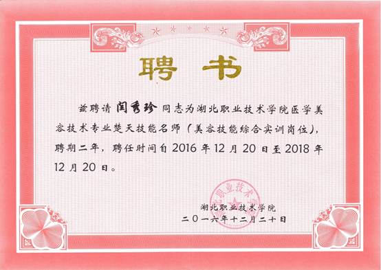 楚天技能名师——闫秀珍聘书