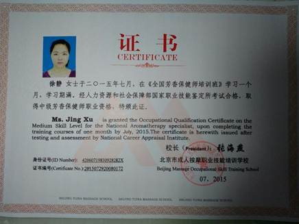 徐静芳香保健师执业资格证书