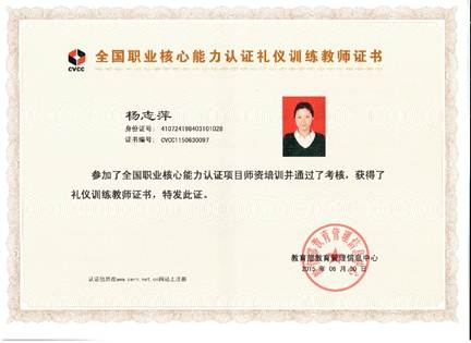 杨志萍礼仪训练教师证书