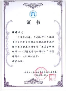 陈娟参加医美咨询设计师师资培训班证书