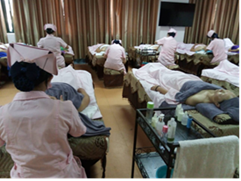 我们在学校实验楼八楼,每星期都会有专门的实训基地与培训,邀约附近阿姨宿管阿姨们一起为做护理,缓解阿姨们的亚健康问题。阿姨们也会有一些体会,睡眠质量得到一定提升 从而得到身体上的一些调解。