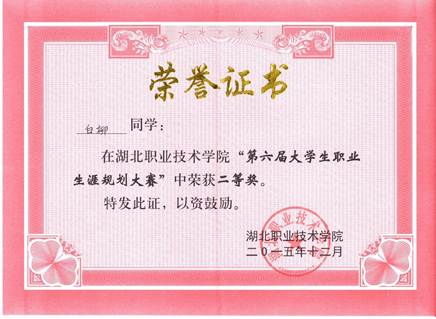 白柳同学在学校第六届大学生职业生涯规划大赛中荣获二等奖