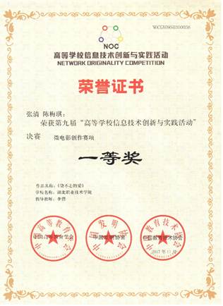 张清、陈梅琪同学在第九届高等学校信息技术创新与实践活动中荣获一等奖