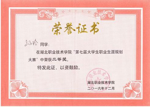 孙玲同学在学校第七届大学生职业生涯规划大赛中荣获二等奖
