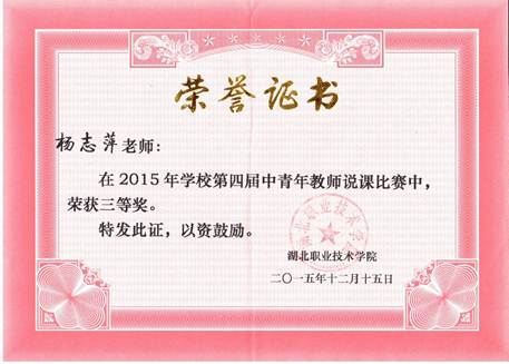 杨志萍老师在学校第四届中青年教师说课比赛中荣获三等奖