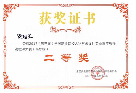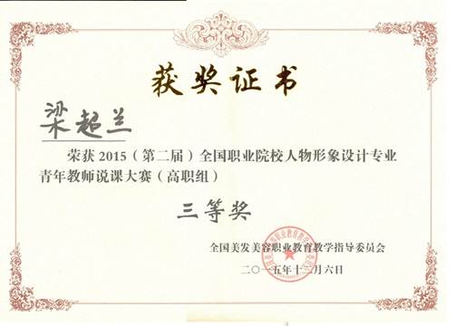 梁超兰老师在第二届全国职业院校人物形象设计专业青年教师说课大赛荣获三等奖
