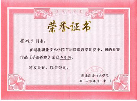 梁超兰老师在学校第二届微课教学比赛中荣获二等奖