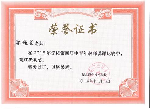 梁超兰老师在学校第四届中青年教师说课比赛中荣获优秀奖