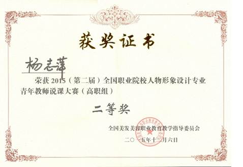 杨志萍老师在第二届全国职业院校人物形象设计专业青年教师说课大赛荣获二等奖