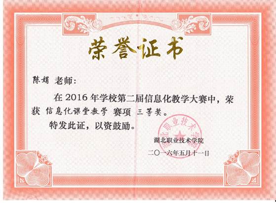 陈娟老师在学校第三届信息化教学大赛中荣获三等奖