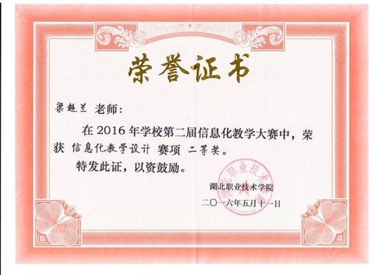 梁超兰老师在学校第二届信息化教学大赛中荣获二等奖