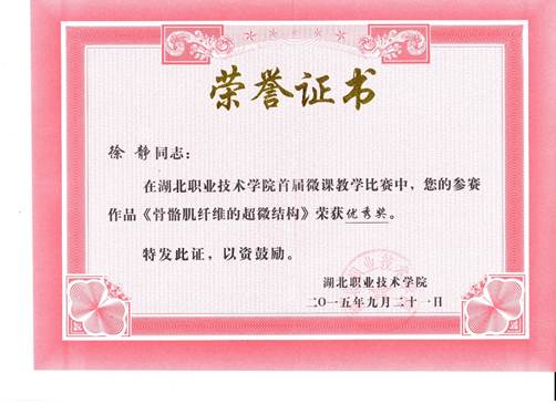 徐静老师在学校首届微课比赛中荣获优秀奖