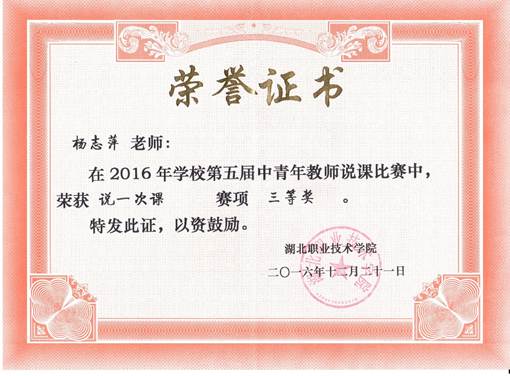 杨志萍在学校第五届中青年教师说课比赛中荣获三等奖