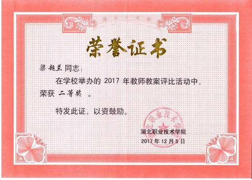 梁超兰老师在学校教案评比活动中荣获二等奖