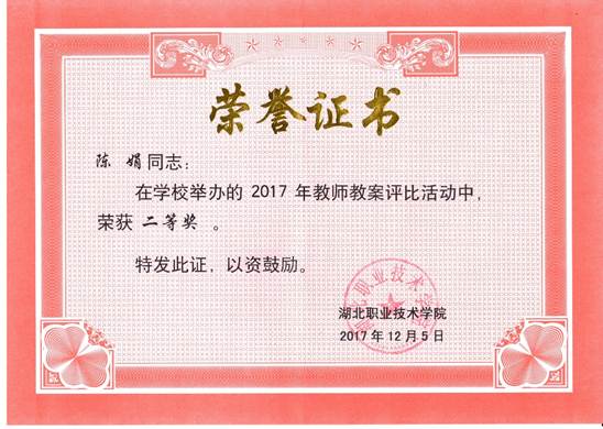 陈娟老师在学校举办的教案评比活动中荣获二等奖