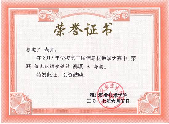 梁超兰老师在学校第三届信息化教学大赛中荣获三等奖
