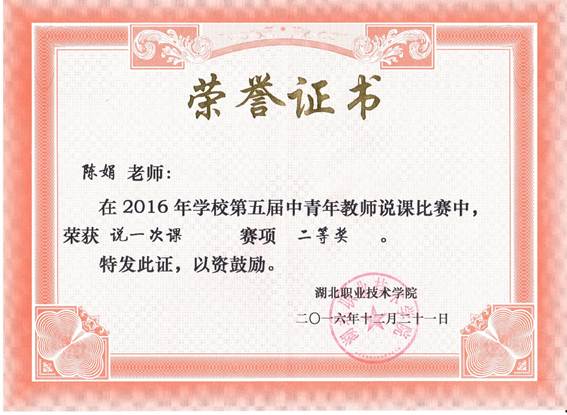 陈娟老师在学校第五届中青年教师说课比赛中荣获二等奖