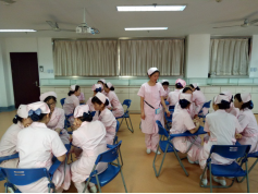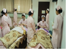 经考核合格的小老师分成若干小组,每组5-7人分别担任校内美容院店长、顾问、美容师等职位,在仿真训练室、美容院真实的场景中顶岗工作,按照美容院的服务流程,顾客从预约到跟踪服务全程学生主导,老师辅导。每组每周值班1天,老师全程指导,每周进行经验分享总结,并上交总结报告。