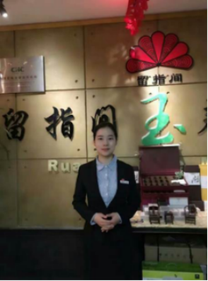 周梦瑶,2016届小老师,湖北随州人。在校期间担任生产性美容院顾问、店长职务。2015年进入香港卡连弗集团。2015年7月—2016年3月市场见习讲师,2016年3月—2016年6月市场初中级讲师。2016年毕业后,进入北京留指间玉健康管理有限公司从事销售项目经理,年薪30万;2018年2月成为北京留指间亚运村店经理,年薪50万。