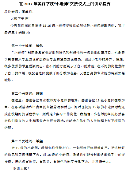 每年6月份,大二学生实习之前,举行小老师交接仪式暨优秀小老师表彰活动。