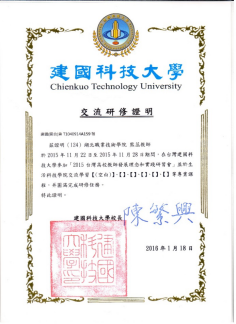 师生到台湾建国科技大学交流学习研习证明