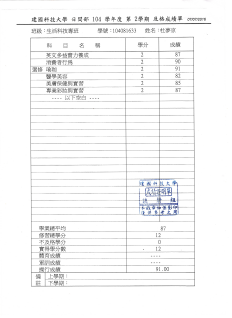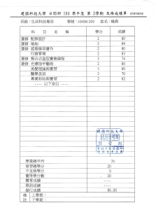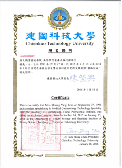 学生到台湾建国科技大学交流学习取得学分证明