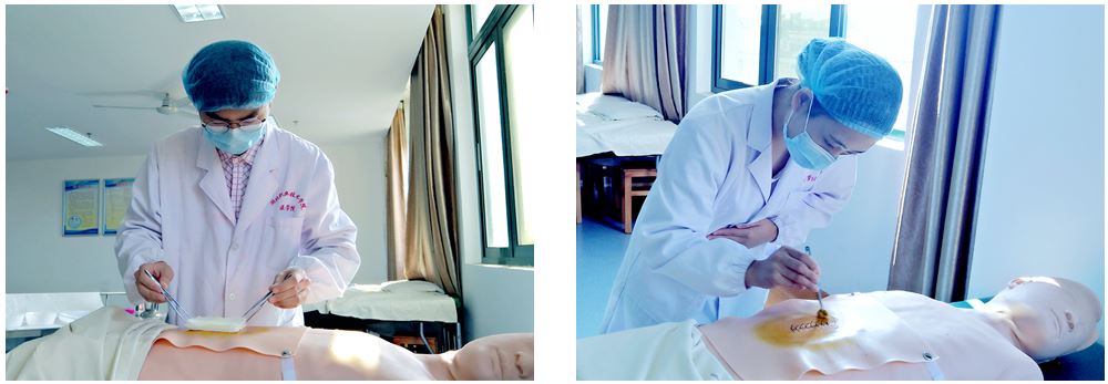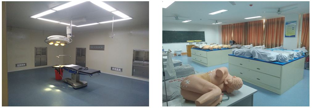 手术基本技能操作实训室主要包括:动物手术室、模拟手术室,主要仪器设备有液压调节手术床、无影灯、动物手术台、非接触式洗手设备、手术衣、手术巾单和常用手术器械等,能够满足无菌技术操作和手术基本技能操作的实训教学需要。
