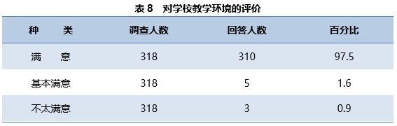 本次调查内容主要从“总体评价”、“培养过程”、“课程设置”、“教学条件”、“实验实习”、 “意见与建议”几个方面展开调查。