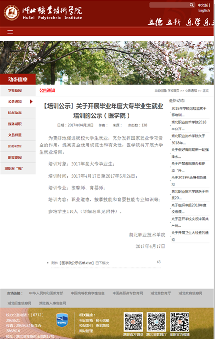 医学院关于开展毕业年度大专毕业生就业培训的公示