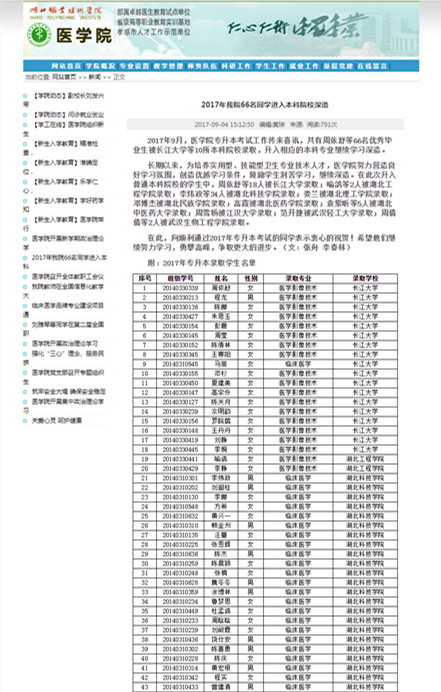 医学院网站2017年我院66名同学进入本科院校深造新闻