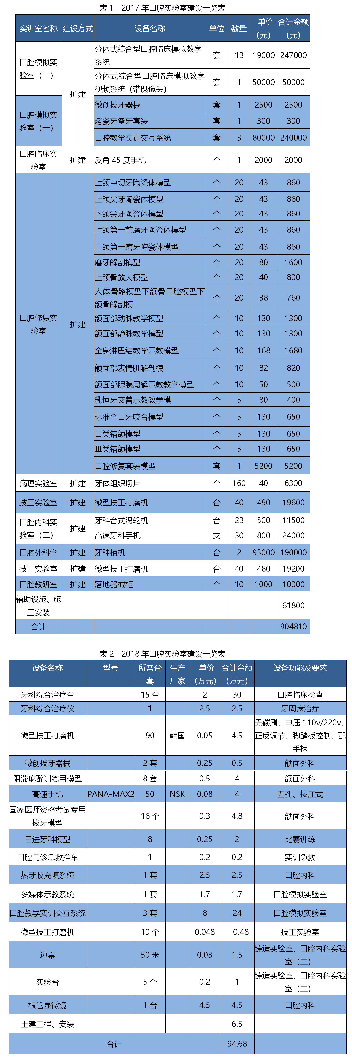 2017-2018年口腔医学实验室建设情况