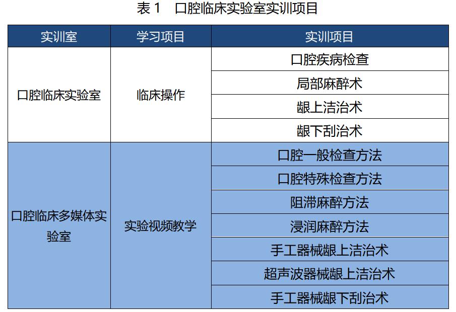 口腔临床实验室有实验室2间,现有牙科综合治疗椅12台,超声波洁牙机、LED光固化机、多媒体教学系统等教学设备,可以开展口腔疾病检查、局部麻醉术、牙拔除术、龈上洁治术等校内实验实训项目,能满足教学与实验实训需要。