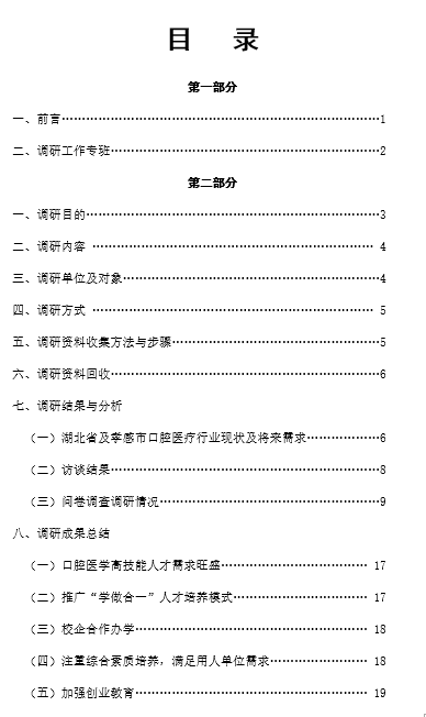 4. 其它方式 通过走访相关市县(区)卫生行政主管部门,或利用图书资料、统计资料、档案资料、互联网等信息渠道,详细了解国家、湖北省、市、县的卫生规划,对口腔医学专业人才资源的现状、需求及素质能力、技能特点、发展方向深入了解与分析。