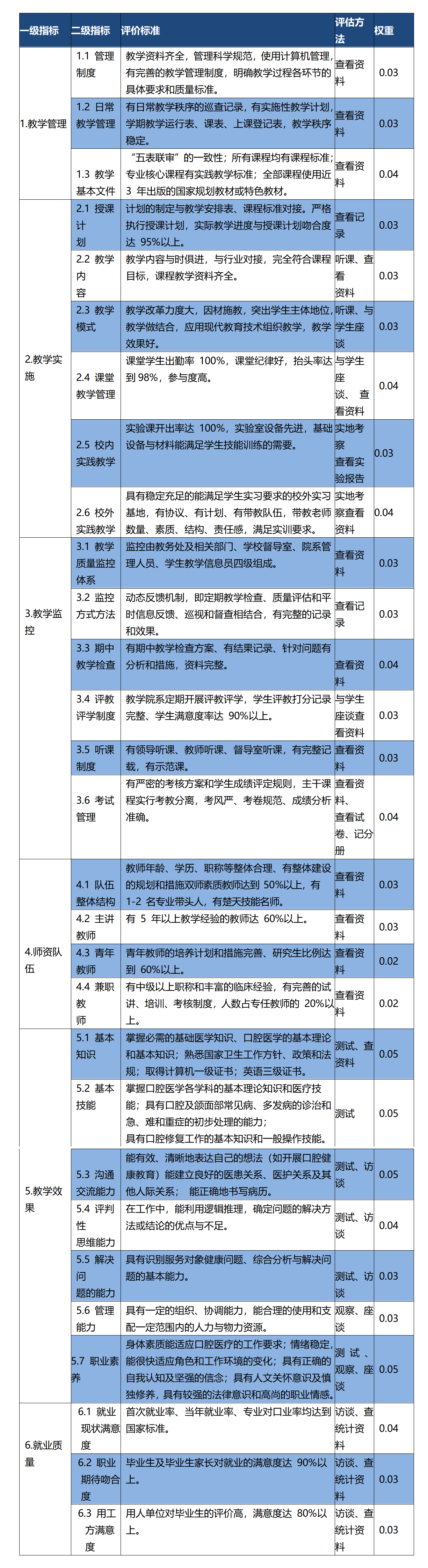 口腔医学专业教学质量评价指标体系