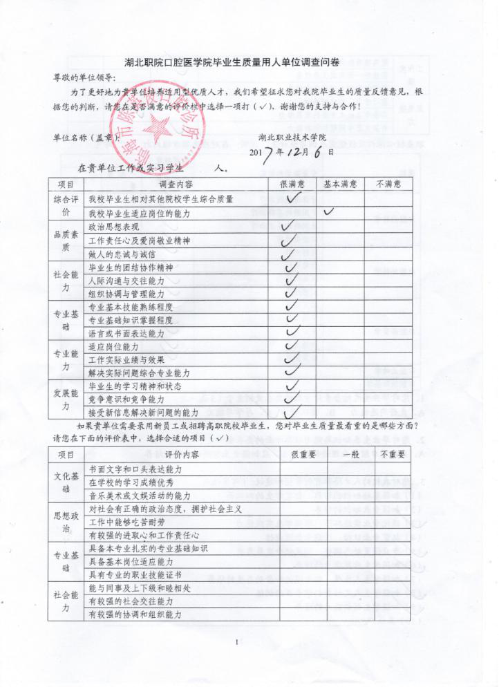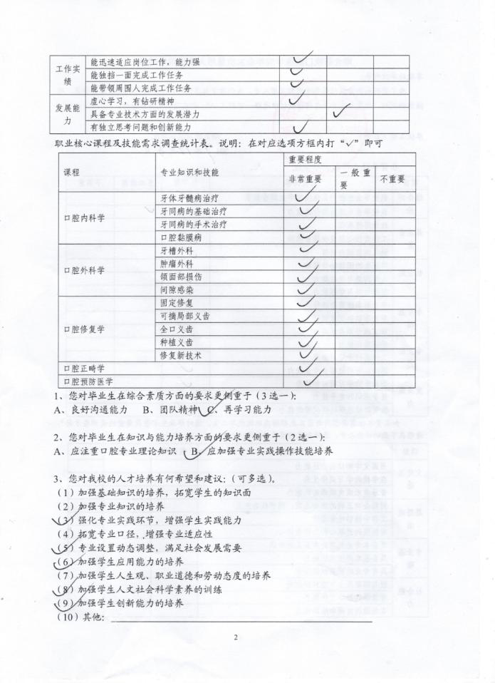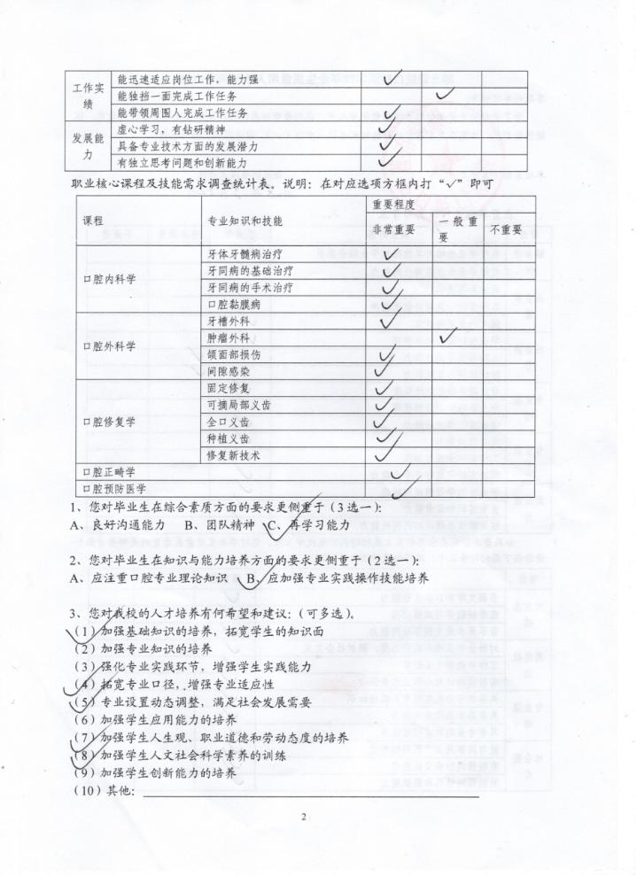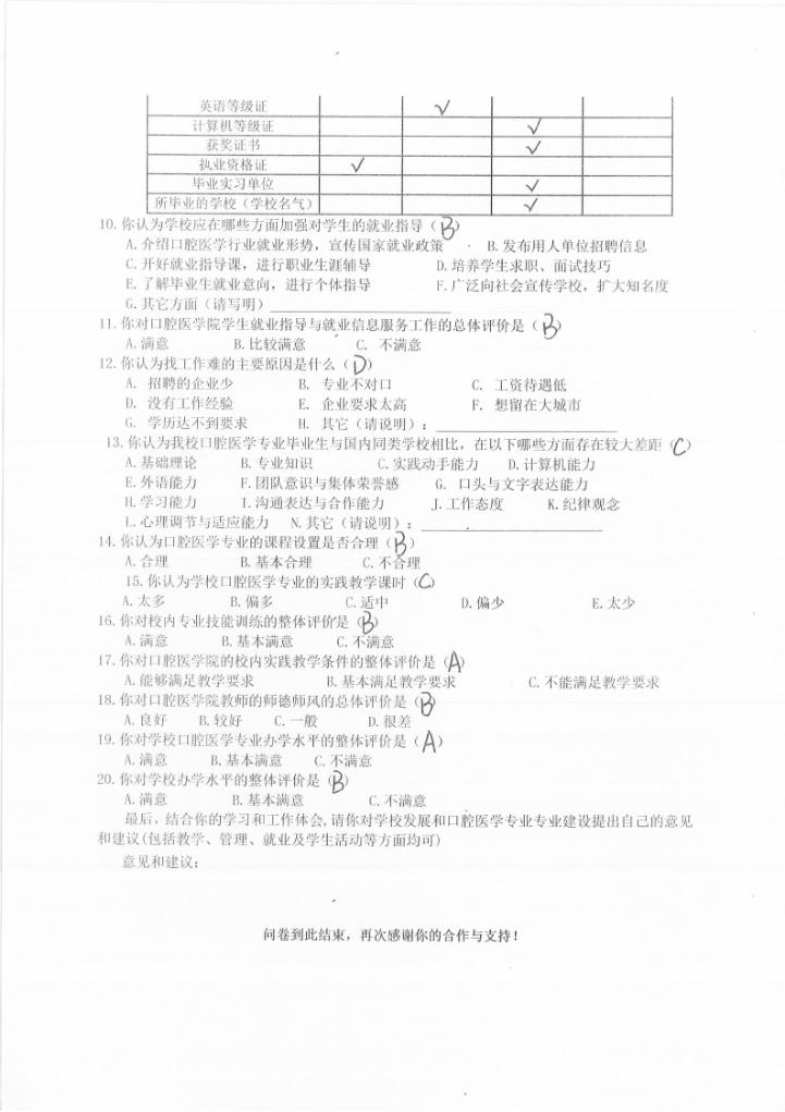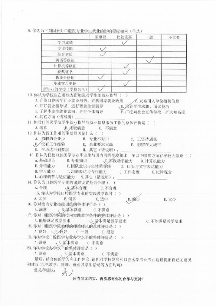 口腔医学专业2017年毕业生跟踪调查分析报告与用人单位调查报告
