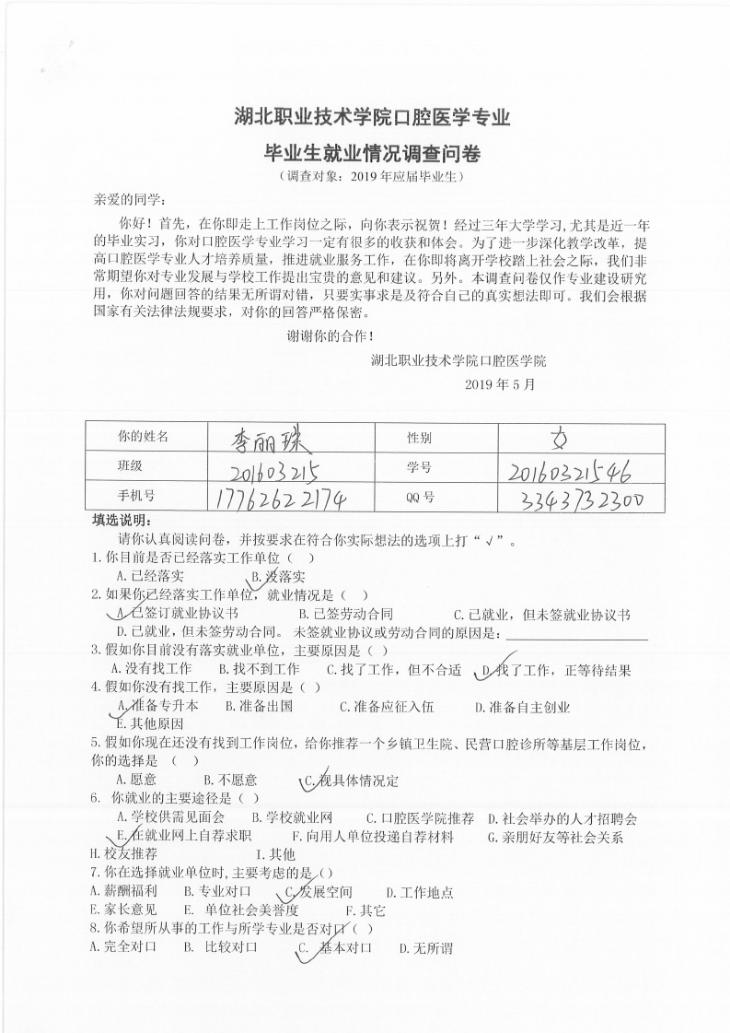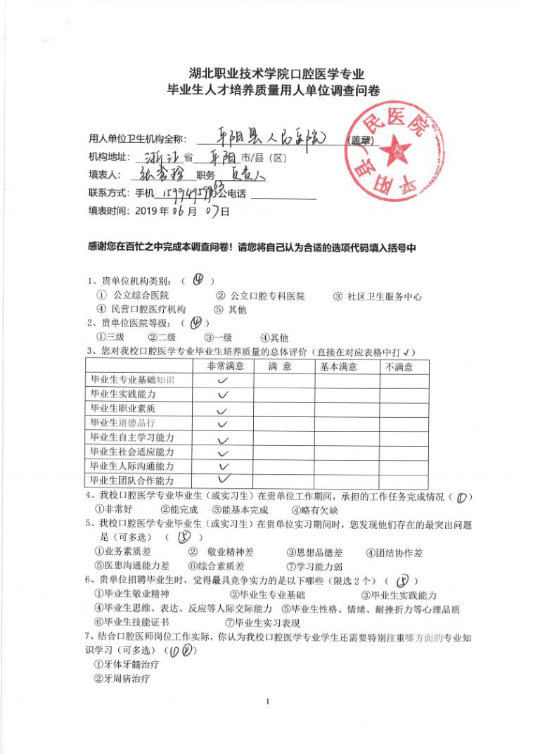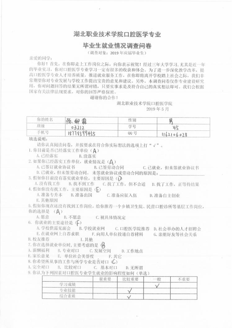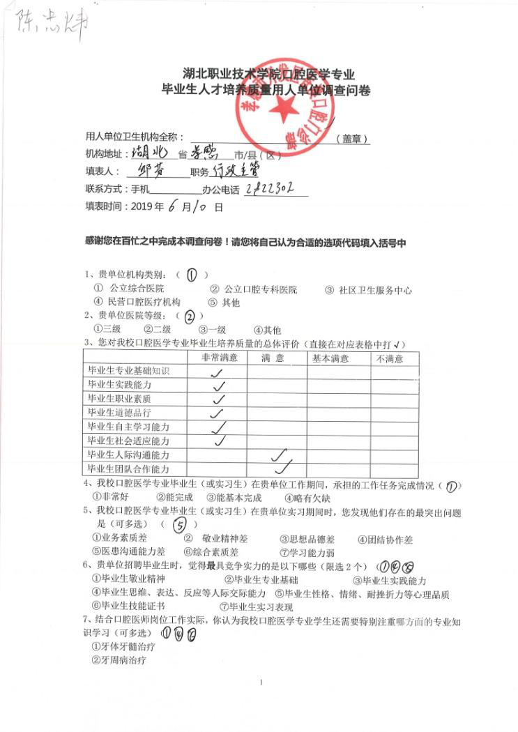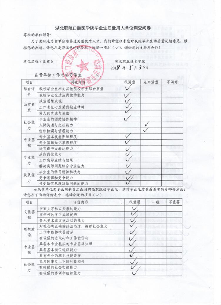 口腔医学专业2017年毕业生跟踪调查分析报告与用人单位调查报告