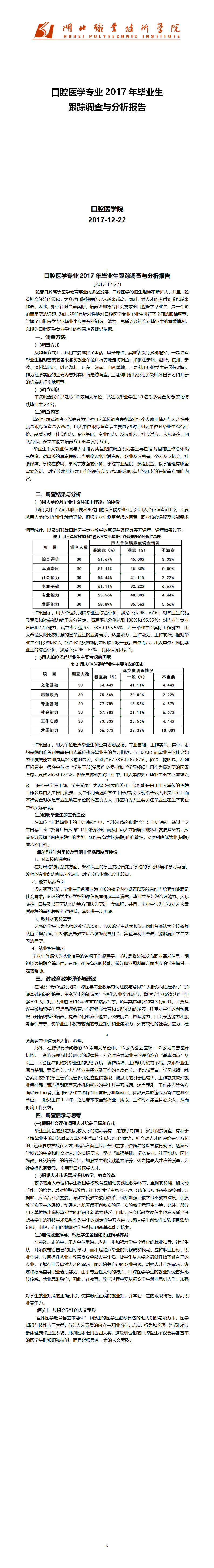 口腔医学专业2017年毕业生跟踪调查分析报告与用人单位调查报告