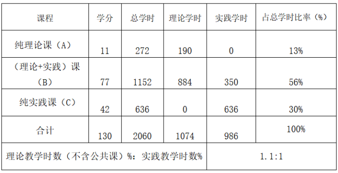 十三、理论实践教学学时比例表