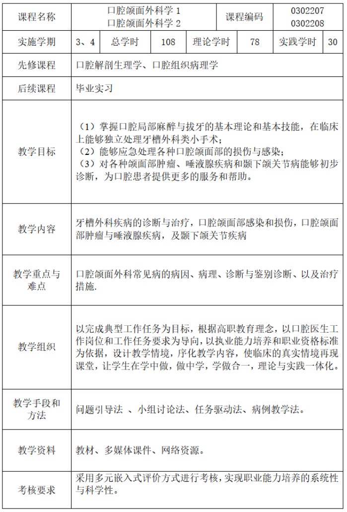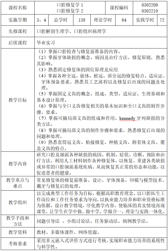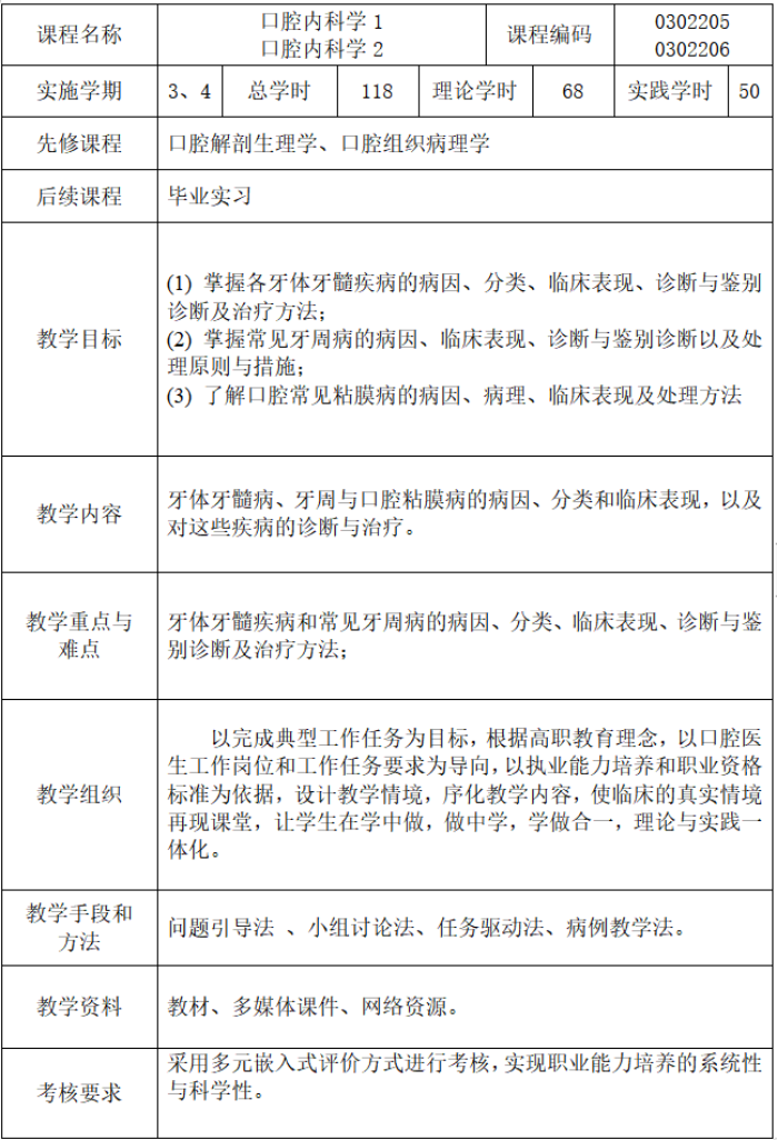 口腔医学专业人才培养方案